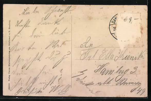 alte Ansichtskarte, gelaufen, Briefmarke entfernt, rückseitig Oberflächenschaden, guter Zustand