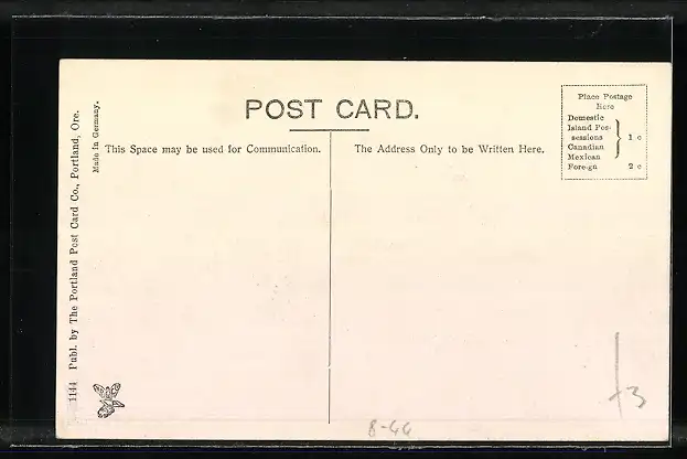 Personenbezogene Daten auf der Rückseite der Karte wurden durch blauen Textmarker unkenntlich gemacht. Die blauen Stellen sind auf die Vorderseite durchgeweicht und wirken sich negativ auf das Postkartenfoto aus