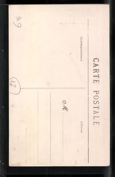 Personenbezogene Daten auf der Rückseite der Karte wurden durch blauen Textmarker unkenntlich gemacht. Die blauen Stellen sind auf die Vorderseite durchgeweicht und wirken sich negativ auf das Postkartenfoto aus