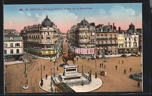 AK Orléans, Place du Martroi et Rue de la République