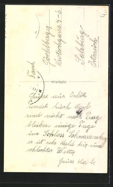 alte Ansichtskarte, gelaufen, Briefmarke entfernt, guter Zustand