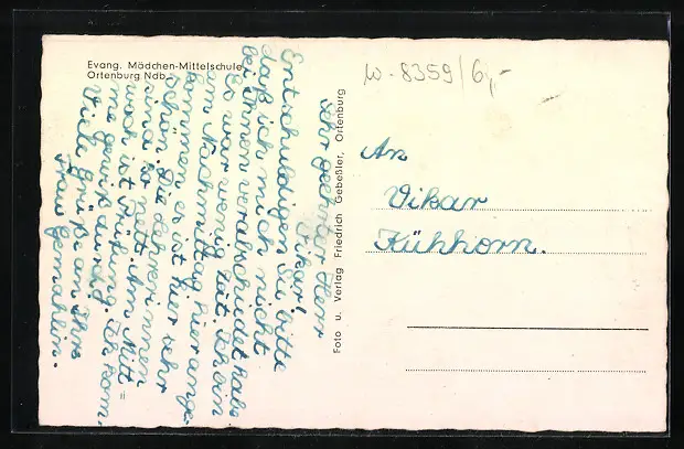 AK Ortenburg in Ndb., Blick auf die Evang. Mädchen-Mittelschule