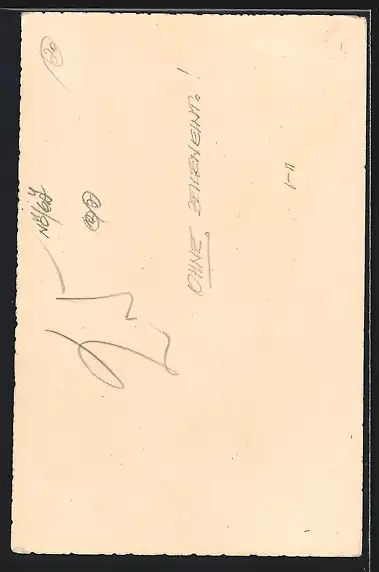 Personenbezogene Daten auf der Rückseite der Karte wurden durch blauen Textmarker unkenntlich gemacht. Die blauen Stellen sind auf die Vorderseite durchgeweicht und wirken sich negativ auf das Postkartenfoto aus