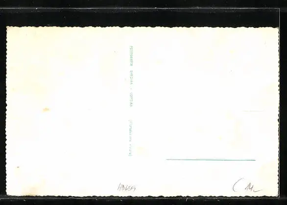 Personenbezogene Daten auf der Rückseite der Karte wurden durch blauen Textmarker unkenntlich gemacht. Die blauen Stellen sind auf die Vorderseite durchgeweicht und wirken sich negativ auf das Postkartenfoto aus