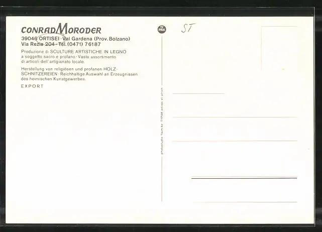 AK Ortisei, Holzschnitzereien Conrad Moroder