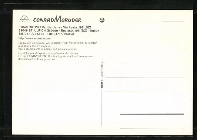 AK Ortisei, Holzschnitzereien Conrad Moroder, Via Rezia 198