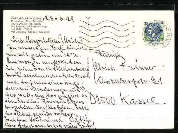 AK Ortisei - St. Ulrich, vor dem Cafe Solaria Garni