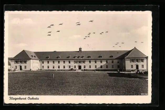 AK Oschatz, Fliegerhorst, Vorderansicht mit Flugzeugen