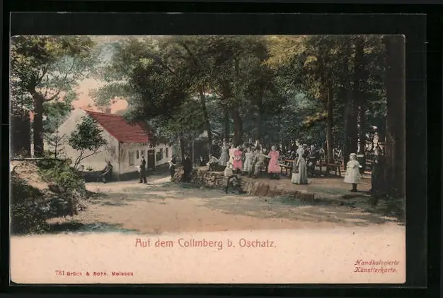 AK Oschatz, Gasthaus auf dem Collmberg mit Kundschaft