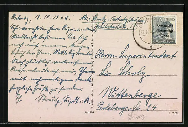 alte Ansichtskarte, gelaufen 1948, guter Zustand