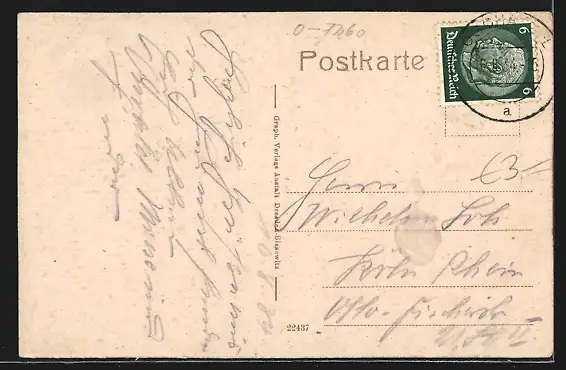 alte Ansichtskarte, gelaufen 1934, rückseitig Klebe- und Papierreste, guter Zustand