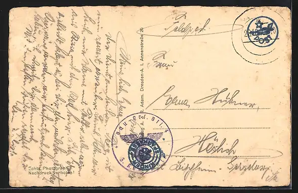 alte Ansichtskarte, gelaufen 1940, Eckknick li. oben, rückseitig Oberflächenschaden, guter Zustand
