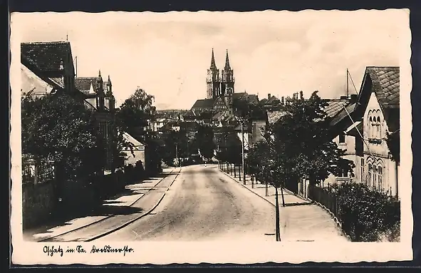 AK Oschatz in Sa., Dresdner Strasse mit Bäumen