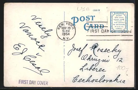 gelaufen 1954, Briefmarke entfernt, guter Zustand