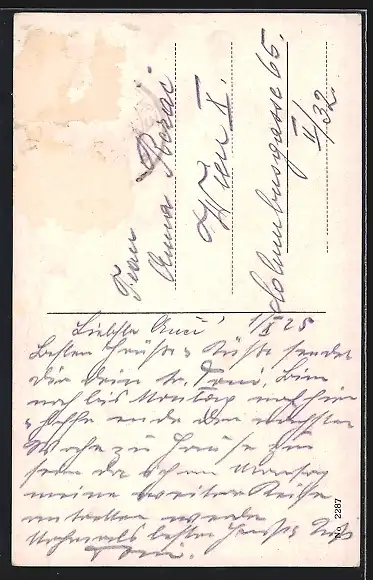 alte Ansichtskarte, gelaufen, Briefmarke entfernt, rückseitig Oberflächenschaden, guter Zustand