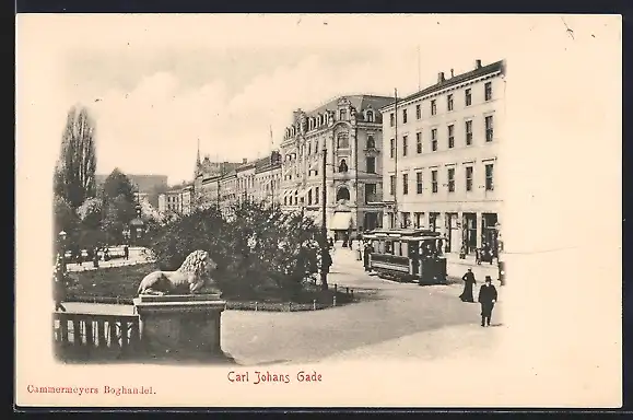 AK Oslo, Carl Johans Gade, Strassenbahn