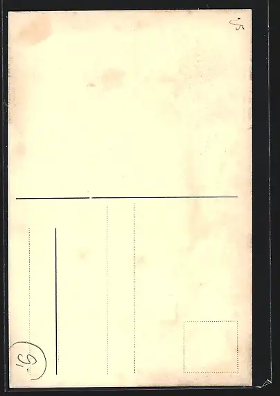 Personenbezogene Daten auf der Rückseite der Karte wurden durch blauen Textmarker unkenntlich gemacht. Die blauen Stellen sind auf die Vorderseite durchgeweicht und wirken sich negativ auf das Postkartenfoto aus