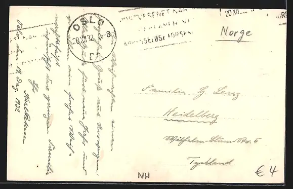 gelaufen 1932, Briefmarke entfernt, guter Zustand