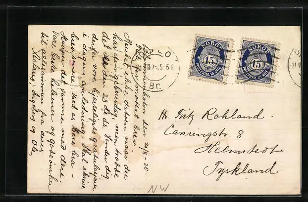 gelaufen 1925, Eckknick oben links, guter Zustand