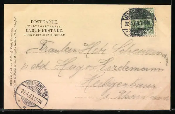 alte Ansichtskarte, gelaufen 1903, guter Zustand