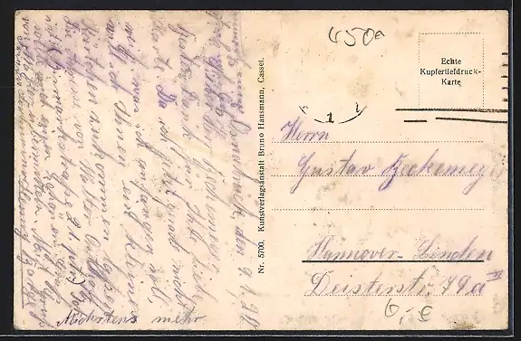 alte Ansichtskarte, gelaufen, Stempelspur, Eckknick li. oben, Briefmarke entfernt, guter Zustand