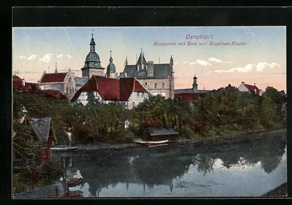 AK Osnabrück, Hasepartie mit Dom und Ursulinen-Kloster