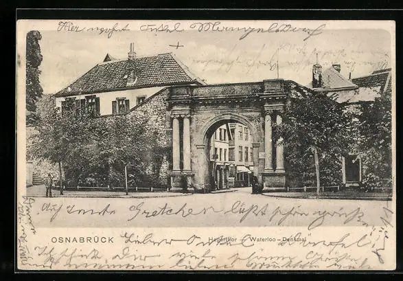 AK Osnabrück, Hegerthor mit Waterloo-Denkmal