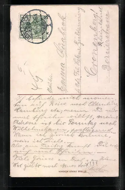 alte Ansichtskarte, gelaufen 1910, Ecken bestoßen, Stempelspur, sonst guter Zustand