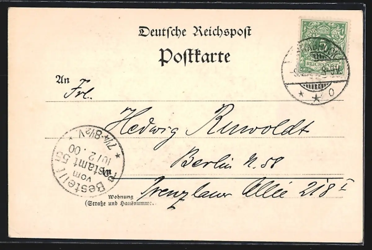 alte Ansichtskarte, gelaufen 1900, guter Zustand