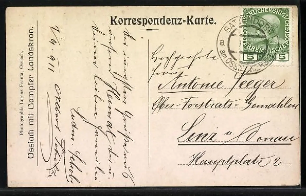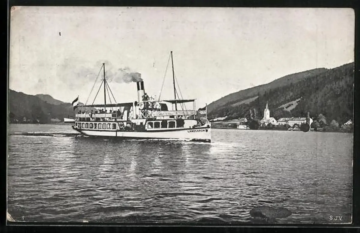 AK Ossiach, Dampfer Landskron vor dem Ort