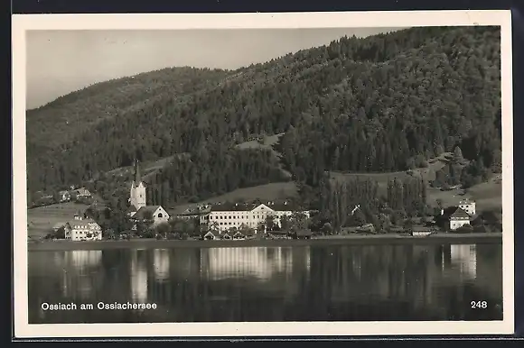 AK Ossiach am Ossiachersee, Blick zum Ort mit Kirche