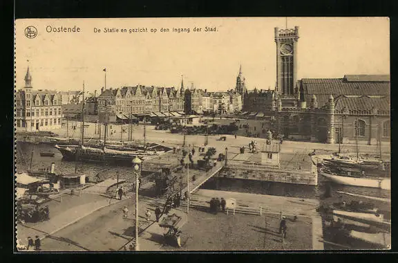 AK Ostende, De Statie en gezicht op den ingang der Stad