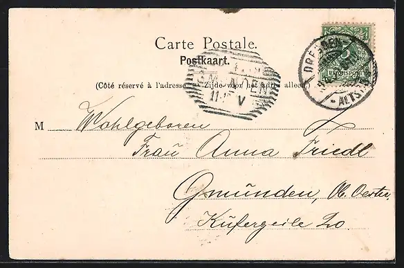 alte Ansichtskarte, gelaufen 1899, guter Zustand