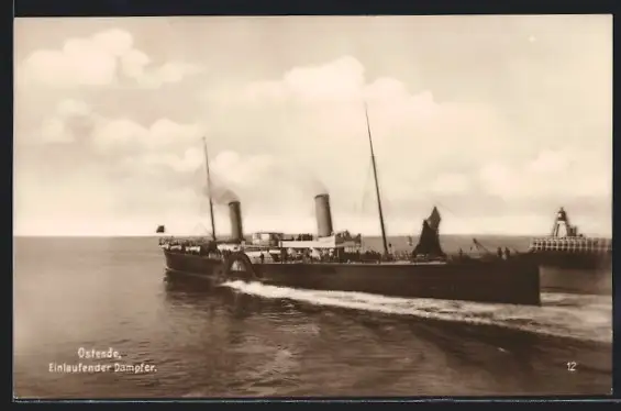 AK Ostende, Einlaufender Raddampfer