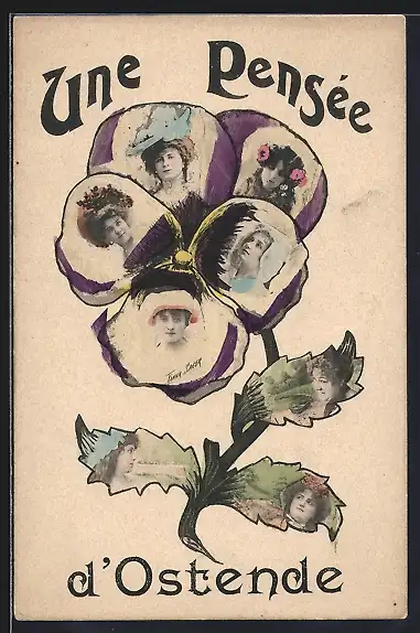 AK Ostende, Frauenportraits in einer Blüte