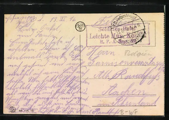 alte Ansichtskarte, gelaufen 1916 als Feldpost, guter Zustand