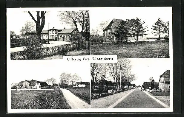 AK Osterby b. Südtondern, Schule, Strassenpartie, Wohnhäuser