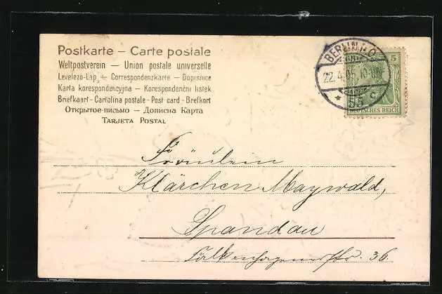 alte Ansichtskarte, gelaufen 1905, guter Zustand