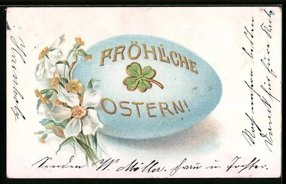 AK Osterei mit Kleeblatt, Fröhliche Ostern