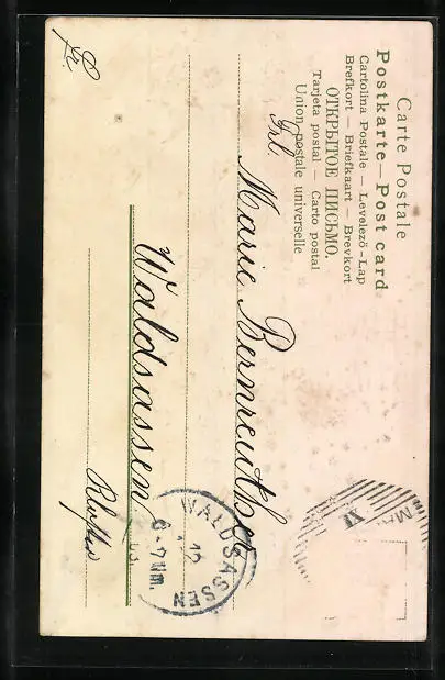 alte Ansichtskarte, gelaufen, Briefmarke entfernt, rückseitig Oberflächenschaden, guter Zustand
