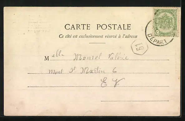 Personenbezogene Daten auf der Rückseite der Karte wurden durch blauen Textmarker unkenntlich gemacht. Die blauen Stellen sind auf die Vorderseite durchgeweicht und wirken sich negativ auf das Postkartenfoto aus