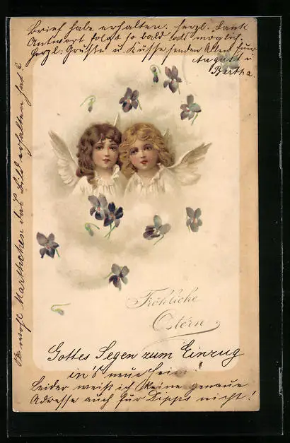 AK Osterengel mit Veilchen