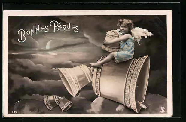 AK Osterengel reitet auf einer Glocke
