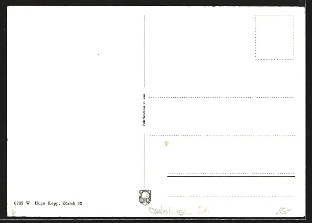 Personenbezogene Daten auf der Rückseite der Karte wurden durch blauen Textmarker unkenntlich gemacht. Die blauen Stellen sind auf die Vorderseite durchgeweicht und wirken sich negativ auf das Postkartenfoto aus