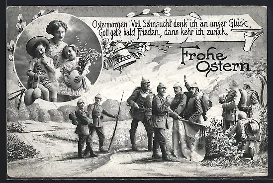 AK Ostergruss, Deutsche Soldaten kampieren am Wegrand