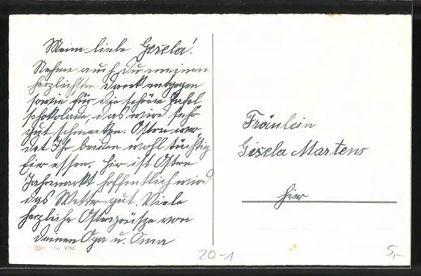 Personenbezogene Daten auf der Rückseite der Karte wurden durch blauen Textmarker unkenntlich gemacht. Die blauen Stellen sind auf die Vorderseite durchgeweicht und wirken sich negativ auf das Postkartenfoto aus