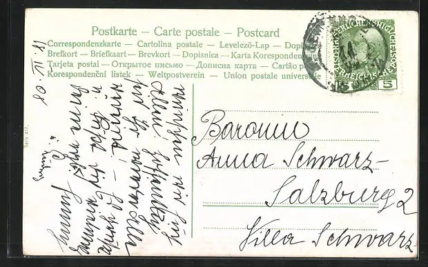 alte Ansichtskarte, gelaufen 1908, Stempelspur, guter Zustand