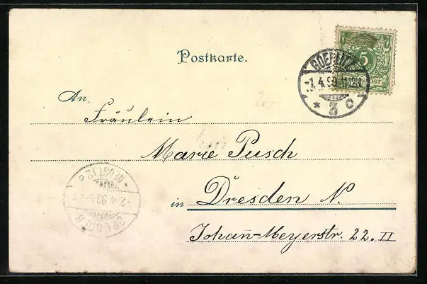alte Ansichtskarte, gelaufen, Bugspur oben links, guter Zustand