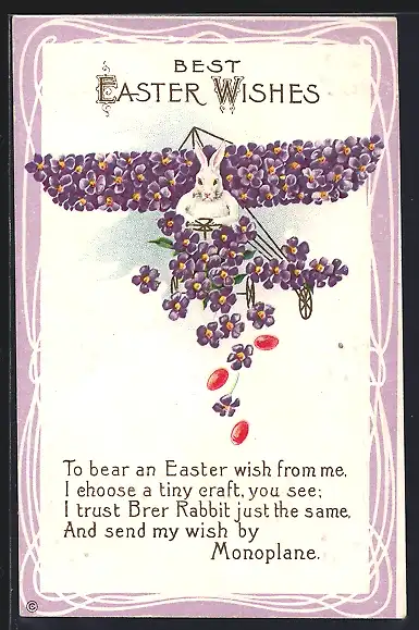 AK Osterhase fliegt in einem Flugzeug aus Veilchen