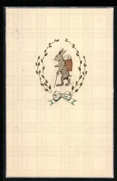 AK Osterhase mit Gehstock und Korb voller Eiern
